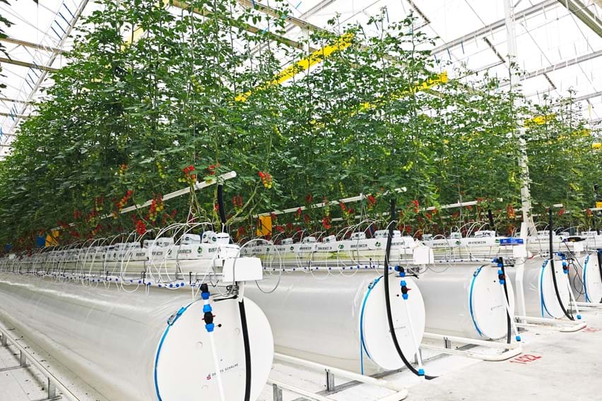 Mechanical cooling provides an effective solution for regions with high temperatures and humidity levels. This system uses heat exchangers installed in front of the fans to gradually cool the greenhouse by recirculating dry, cold air until the desired temperature is reached. This method of cooling and dehumidification enables the cultivation of high-quality produce in (sub)tropical climates.