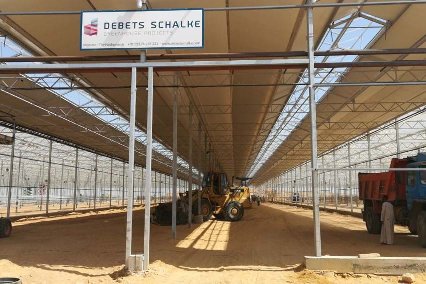 One of the biggest challenges is the drought. With the construction of this greenhouse, water consumption will decrease relatively large. The use of water per kilo greenhouse tomatoes is 8 liters. With the uncovered tomato cultivation, the use is 300 liters per kilo of tomato. The efficient use of water in high-tech greenhouses is the main reason for the Egyptian government to fully invest in greenhouses. Various types of cherry tomatoes will be grown in the Egyptian greenhouse. The cherry tomatoes will be exported to Europe and the Middle East, but it will also be used for the local market. Last January the construction of the greenhouse started and the greenhouse will be ready this summer.
